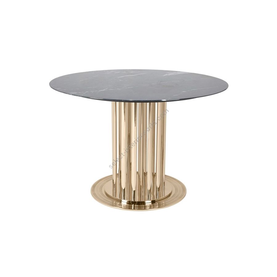 Charlotte modern dining table was inspired by the transcending feminism imbued in its design as a symbol of change. This is a year for women and about women empowering, and making a change in the world. This collection came to be as a result of that movement. It represents a new era in the luxury furniture industry. Charlotte luxury dining table features long gold-plated brass tubes as support for a marble top, placed beautifully. It gives the design a sense of refinement and boldness.