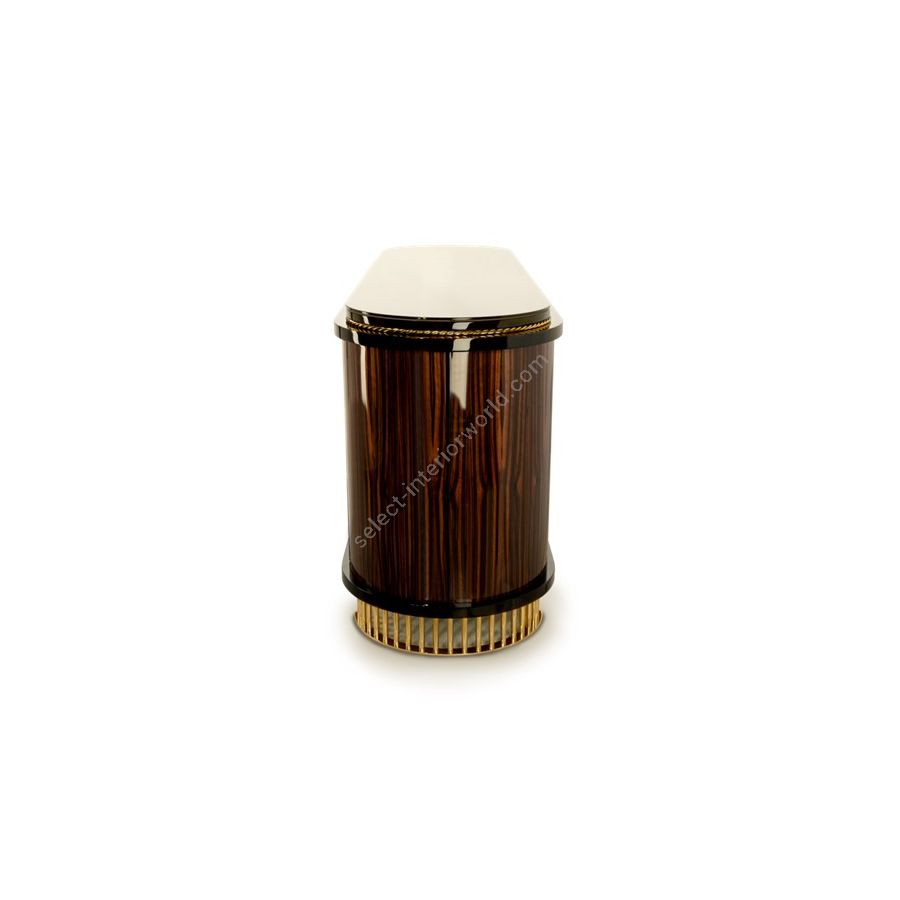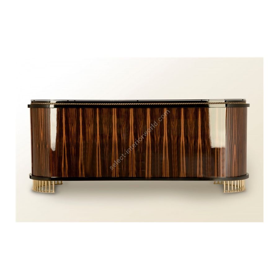 This furniture piece was designed to impress with the unique avant-garde yet elegant design, having a modern touch at its core. This sideboard is composed of carefully selected premium materials like wood, glass, and brass being accomplished with a high gloss black lacquered finish. The sideboard’s Ebony veneer wood structure is complemented with clear glass and sleek brass lines, emphasizing the strong masculine character of this design. It is an eye-catching furniture figure, as this lifestyle element masterfully reflects the beauty of craftsmanship implemented in its production. Balancing comfort and artistic perception, the Nautilus sideboard incorporates the sense of style that distinguishes this exclusive model from other sideboards.
