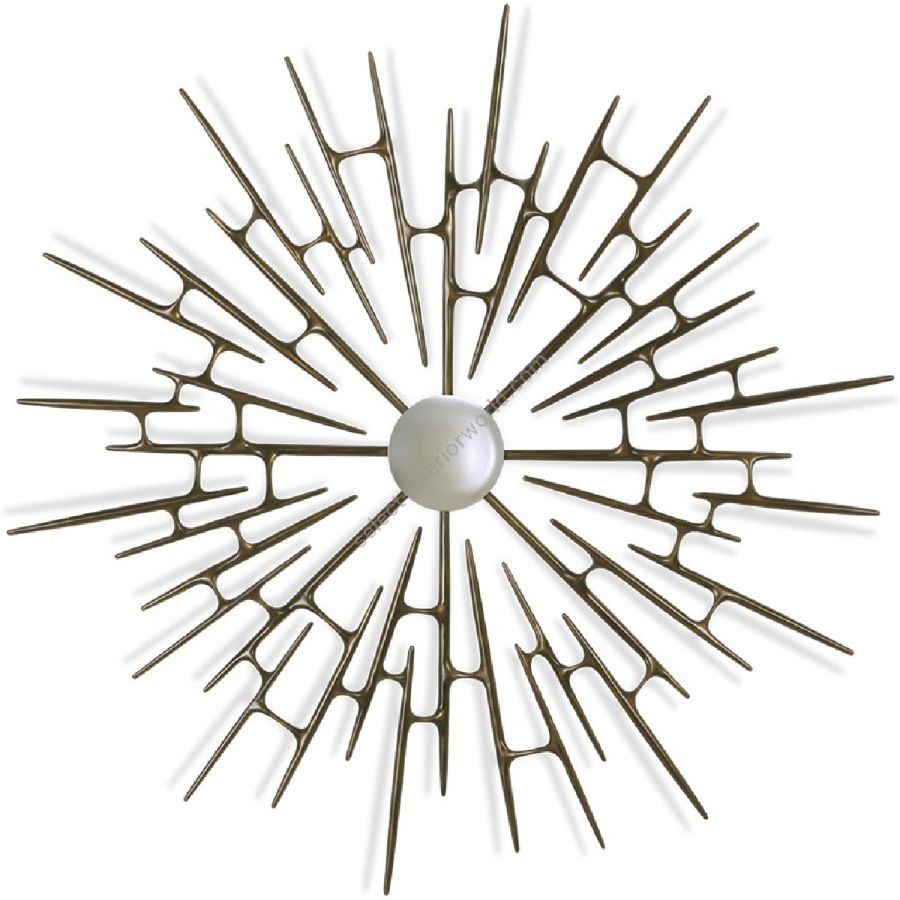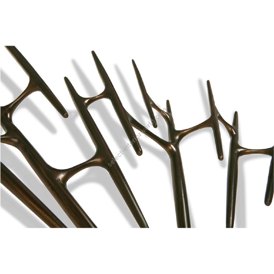 An extraordinarily intricate design, this handcrafted wooden mirror frame defies physics with featherlight connected spindles miraculously radiating from a small central convex mirror pane.