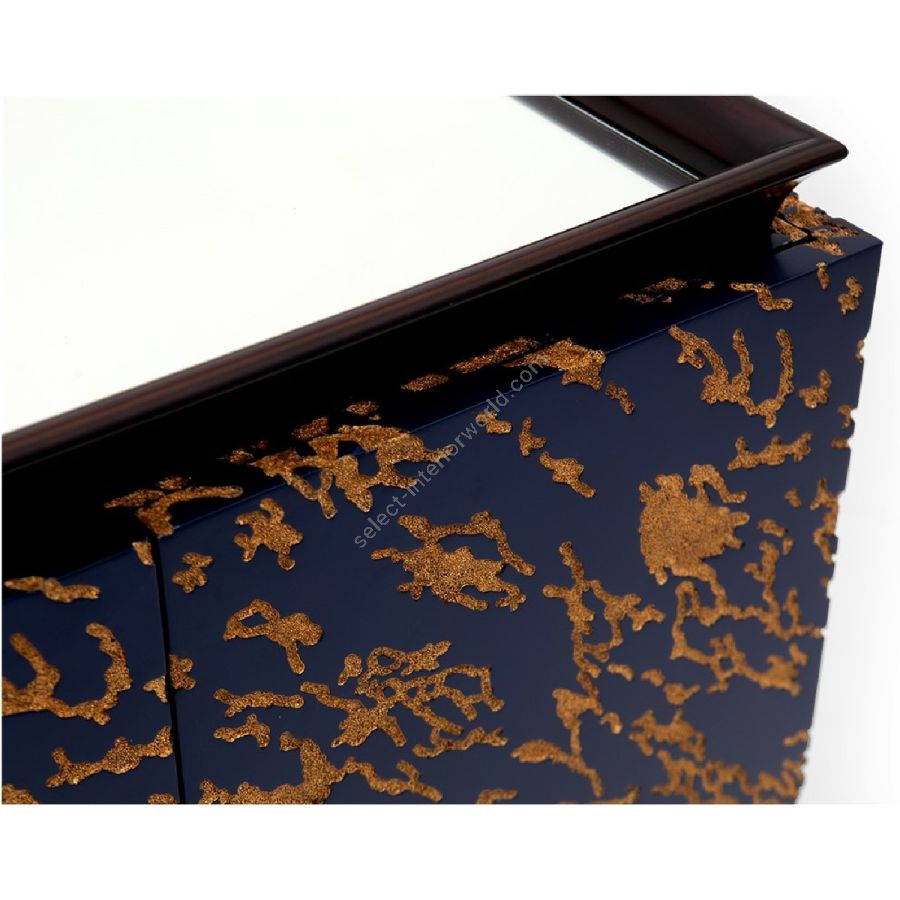 A bar cabinet that creates visual excitement even before the cocktails are served! The abstract embossed pattern is intricately and painstakingly hand carved.