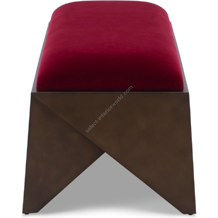 With angular trapezoids in hand carved wood forming a geometric base, the contemporary style of this rectangular bench is softened by the plush upholstered seat making it the perfect accent seat for any style of interior.