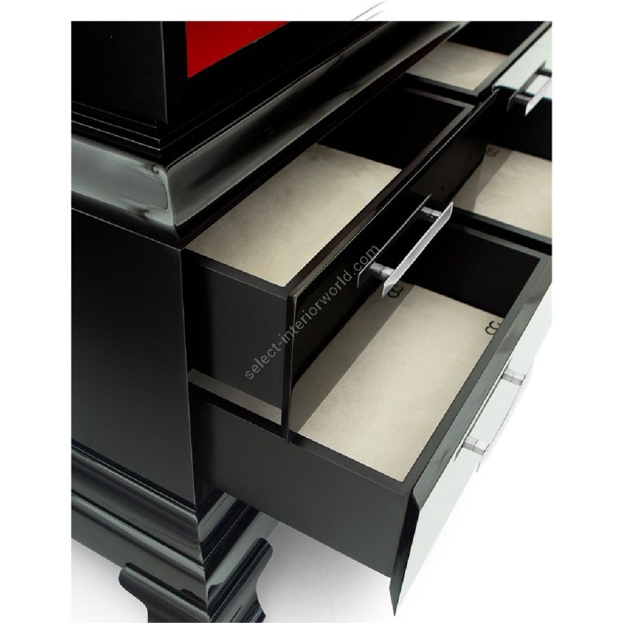 Certified Mahogany hardwood. Hand-Carved. Solid Mahogany and engineered wood construction. Multiple ultra-suede lined drawers with easy glide. Available in a selection of outstanding Standard and Premium finishes. For residential use only. Commercial use is classified as Special Order Design (SOD), and alternative materials may be required. Contact us for details.
