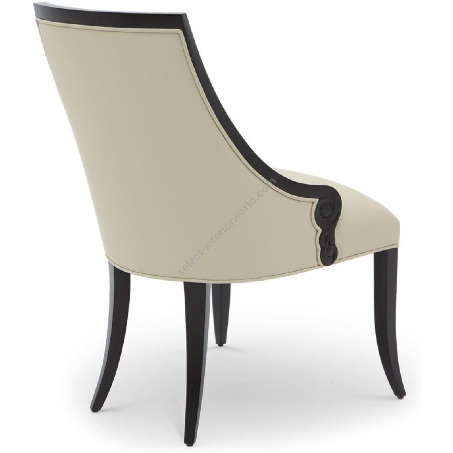 A shallow tub back with sumptuous tufting and flowing saber legs contribute to the fabulous styling of this Christopher Guy modern classic.