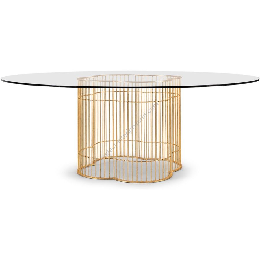 Forged Iron base. Toughened tempered clear glass top. 8-10 Seater Table. For residential use only. Commercial use is classified as Special Order Design (SOD), and alternative materials may be required. Contact us for details.
