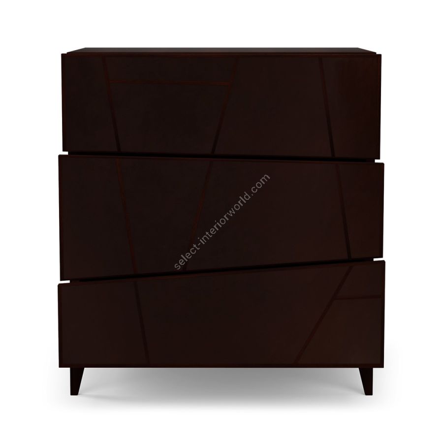 Named after the famous contemporary French architect, a striking nightstand with three drawers, hand carved in wood on an elegant wood base, and clad in geometric shaped leather panels. Also available as a nightstand clad in mirror panes (84-0062), a sideboard clad in leather panels (85-0087), and a sideboard clad in mirror panels (85-0088).