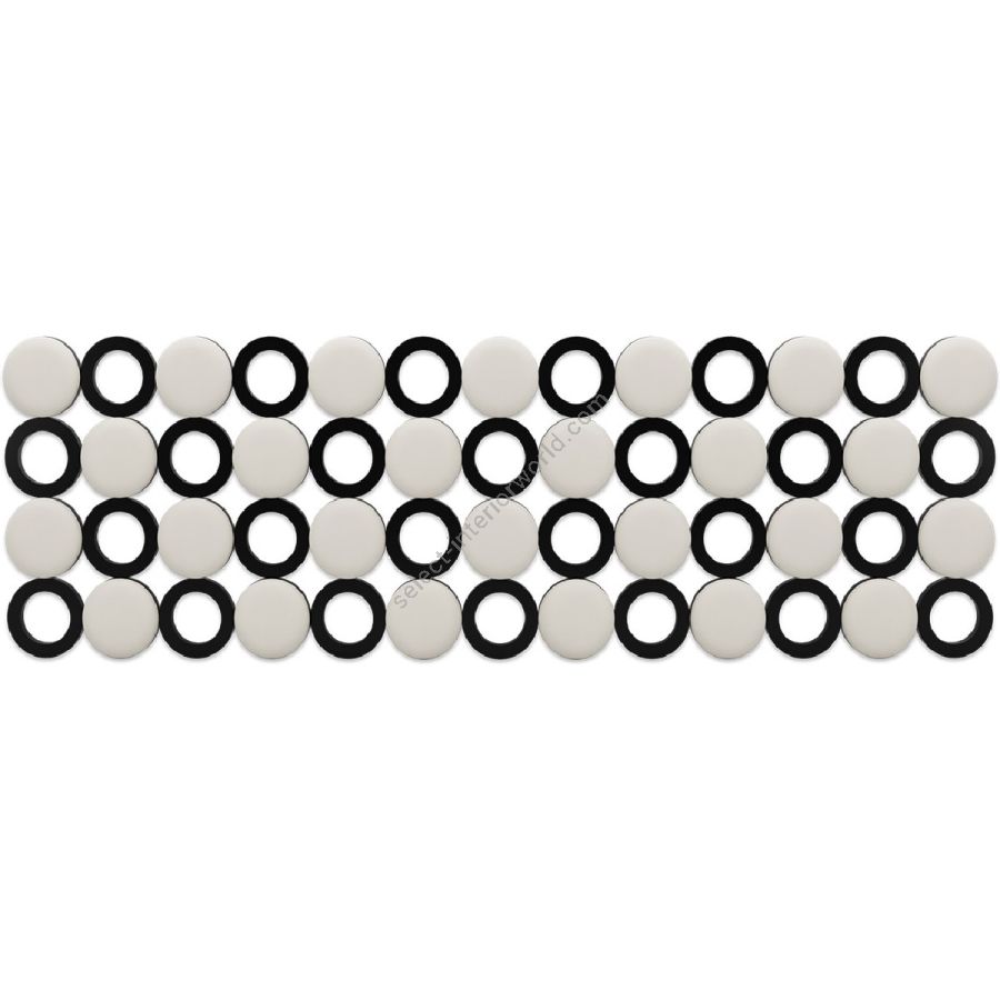 Inspired by the chainmail mini dresses of the Swinging Sixties, this modern-styled headboard features upholstered discs and rings, laid out alternately in a stunning geometric pattern. Also available as a bed set (20-0712).