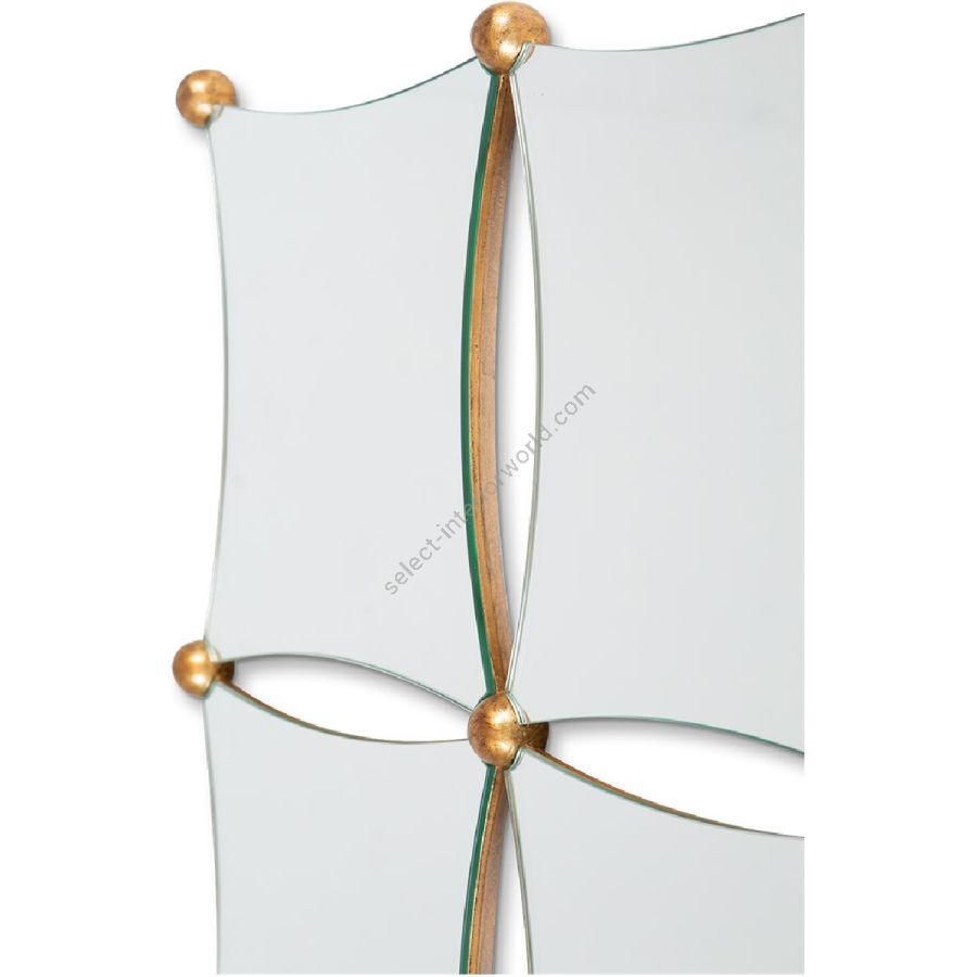 An exceptional design consisting of twelve hand polished curved edge mirror panes adorned by twenty gold carved bobbles.