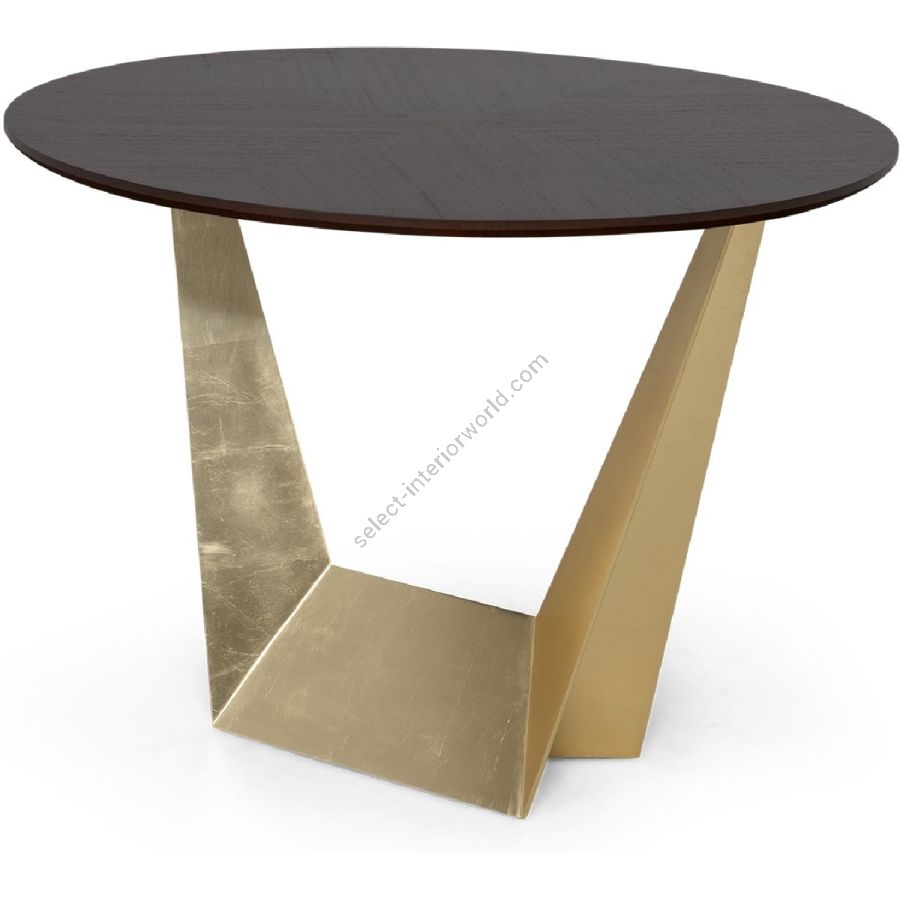 Architecturally inspired with a burnished winged geometric metal base and a round top, the stunning Calatrava table is ideal as a center, breakfast or small dining table.