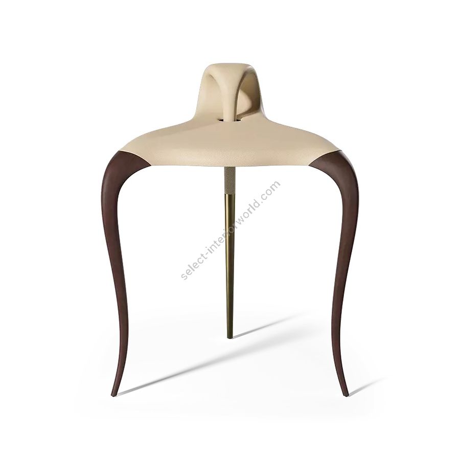 A bold expression of sculptural design, the Shibari side table showcases a masterful blend of materials and form. Its triangular, leather-wrapped top is supported by an asymmetrical trio of legs—two in hand-carved mahogany and one in sleek stainless steel—striking a refined balance between softness and strength. With its contrast of wood, leather, and metal, this contemporary piece is a true statement of modern elegance.