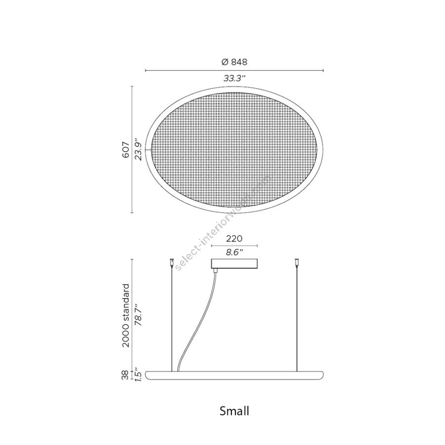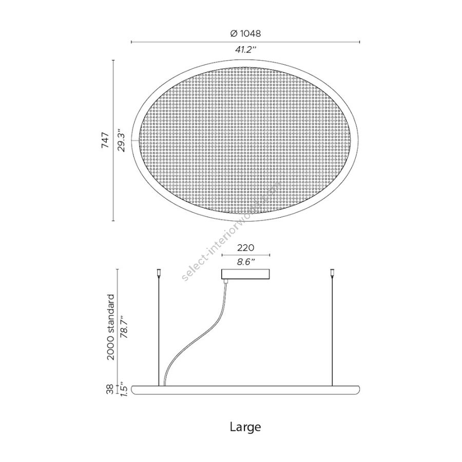 A light element that is fluid, like an object thrown upwards and which remains suspended. The idea of lightness is expressed, using a material that declares its contemporaneity, and which fits into our interiors with decisiveness and elegance. The luminous part, covered in Viennese straw set within a black lacquered oval, has a vintage yet very modern flavour – a style that reminds us of Brazilian and South American modernist interiors of the 1960s and 70s.