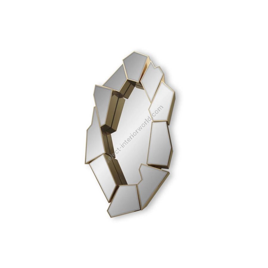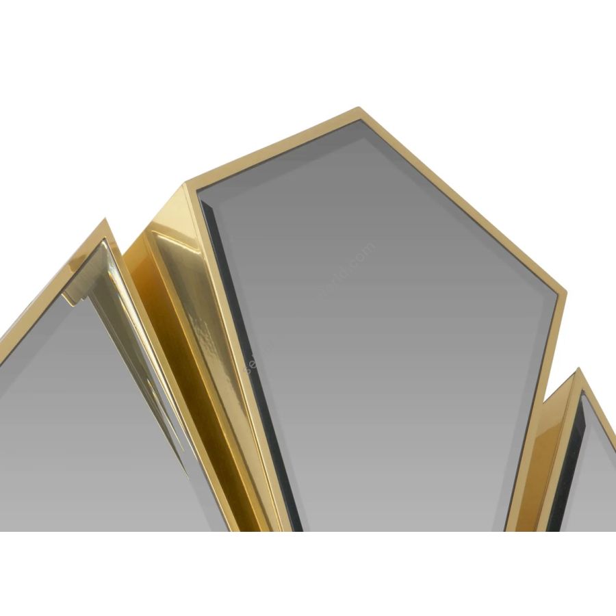 The luxurious Crackle Mirror is crafted from the finest polished brass and smoked black mirror. Inspired by the opulence of golden nuggets, it exudes an air of exclusivity and refinement, capable of transforming any space into a lavish sanctuary. Its geometric design, reminiscent of a shattered mirror, adds a touch of glamour to interiors, promising to create the most captivating and sophisticated ambiance.