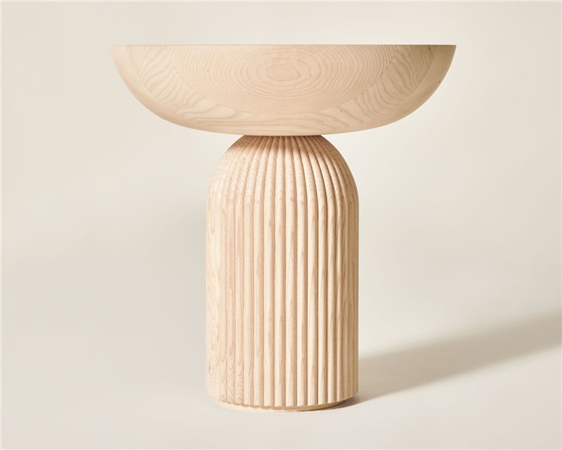 Convesso seems to defy gravity, with the monolithic top balancing on the vertical base. This contrast between surfaces and illusion enhances the beauty of solid ash wood.