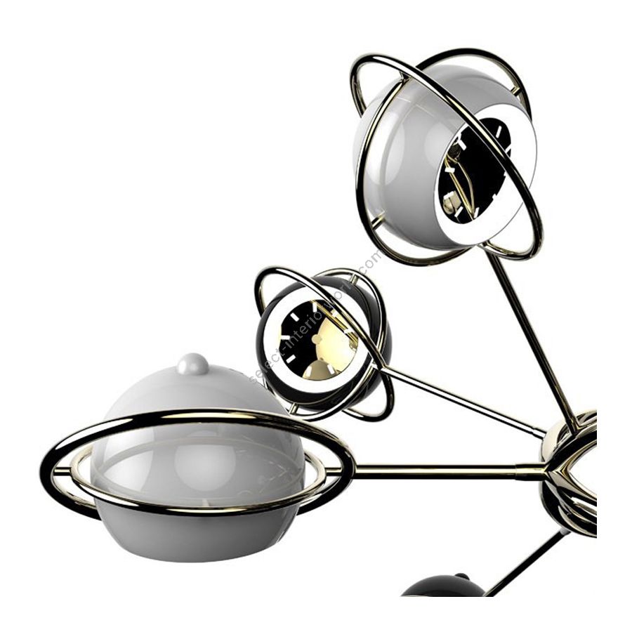 Inspired by the space with all its galaxies and planets, we are proud to present Cosmo. A dynamic piece full of energy and versatility, since all its spheres can rotate within 2 axis which enable it to cast light into any spot. Composed by 11 illuminating spheres of different sizes, the majestic lighting piece is made in aluminum and a brass body structure.