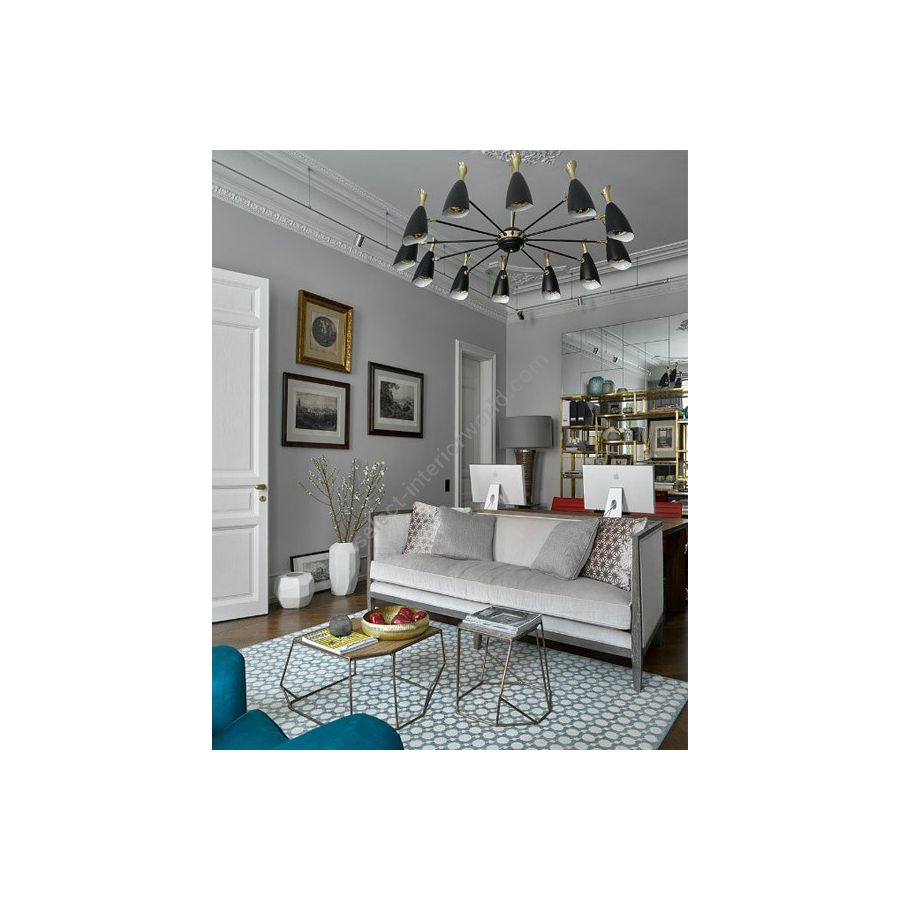 Duke Round is a modern pendant lighting design that boasts a heavy nostalgic 70s groove vibe. Inspired by the simplicity of the 1970s, DelightFULL’s designers were able to create an iconic modern ceiling light that suits the most demanding setting. Produced in Portugal, it is handmade in brass and aluminum. The body, made of brass, has both a matte black and a gold-plated finish, while the shades are lacquered a glossy black on the outside. The inside is matte white, but it can also have a gold powder paint finish. It is a stunning bedroom ceiling light, but this large ceiling light can also be considered for other settings, such as a mid-century modern living room.