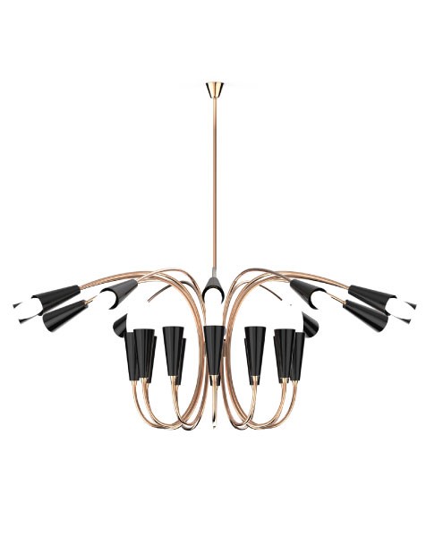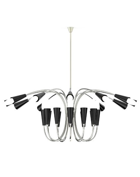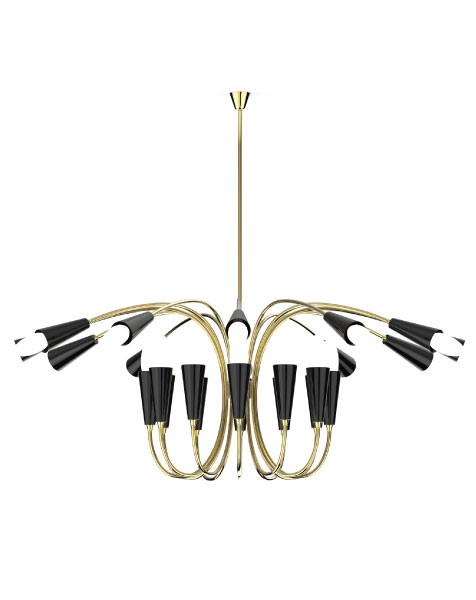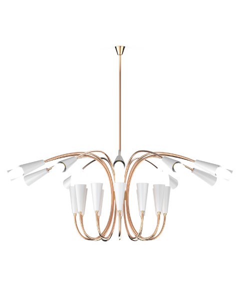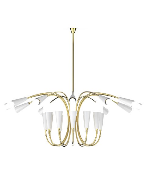 Drawing inspiration from one of the most acclaimed jazz singers of all time, DelightFULL’s designers created Aretha modern chandelier. It is a contemporary reinterpretation of mid-century lighting design classics that were used in the 50s and 60s. The body is 100% handmade in brass and the several bulb holders are made of aluminum. Nickel-plated is the standard finish for the body, while glossy white is used for the sockets.