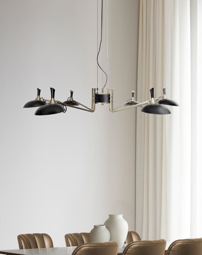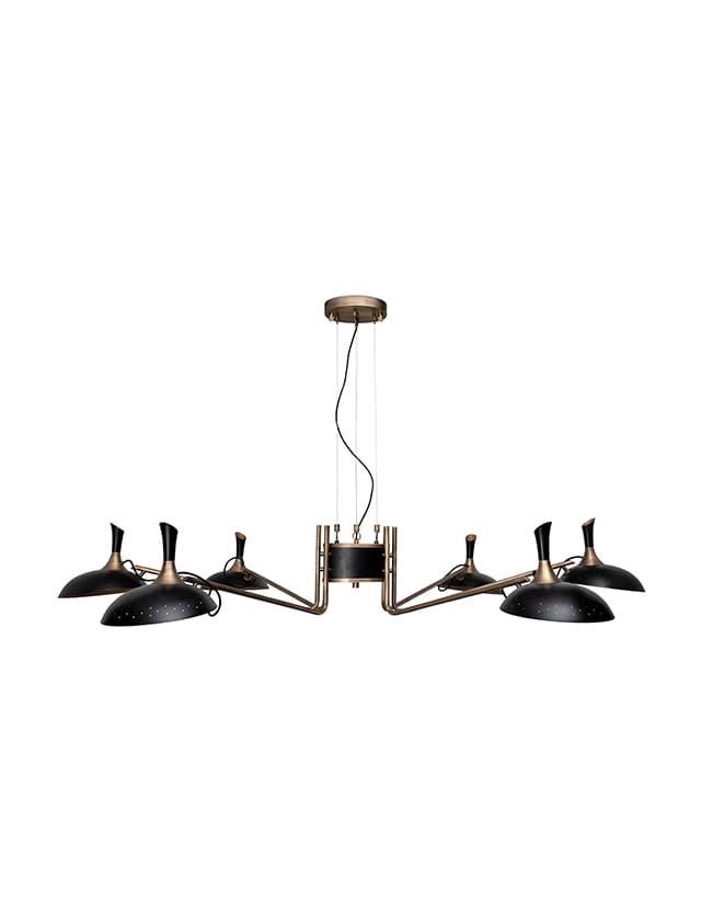 Inspired by the enigmatic life of Abbey Lincoln, this majestic pendant light will be the right lighting design choice for a dramatic dining room. A memorable piece that counts with golden finishes and black matte to give it a twist. This luxurious modern pendant lamp will be giving life and a statement to your modern home decor.