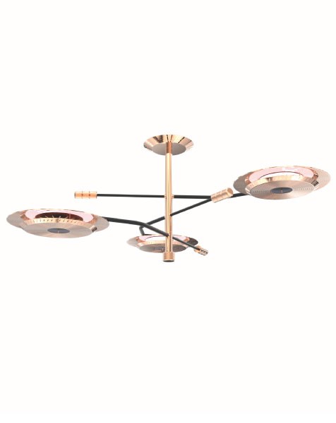 With a shape that was inspired by a golden vinyl player, Hendrix suspension lamp is a tribute the American rock guitarist, singer, and songwriter: Jimi Hendrix. This gold plated luminaire captures your attention letting you feel the acoustics of the bright Hendrix guitar and reminding us the high fidelity audio reproductions. The open, structured look of this ceiling light is a great choice for a stylish mid-century modern interior. The arms are manageable, allowing you to create personalized looks. Finished in gold plated and black matte with a brass structure, each arm of this contemporary chandelier takes 9 x G9 bulb ( included). With a customizable and flexible pole height, Hendrix fixture can be mounted on a sloped ceiling.