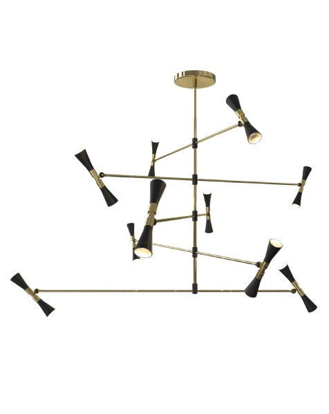 Inspired by the iconic mid-century era, Hank suspension light brings a graceful, organic shape to any room. Perfect for a mid-century modern interior, this lighting design offers the open look that is a great choice for today’s demand of stylish interior. This dazzling lamp has its body in brass and its shade in aluminum. It's stunning telescopic tube has 27, 5“ | 70 cm and its body is gold plated as its shade with black matte makes this an irresistible selection. When it comes to décor, this marvelous and inspiring piece is highly recommended in a mid-century hotel lobby or living room.