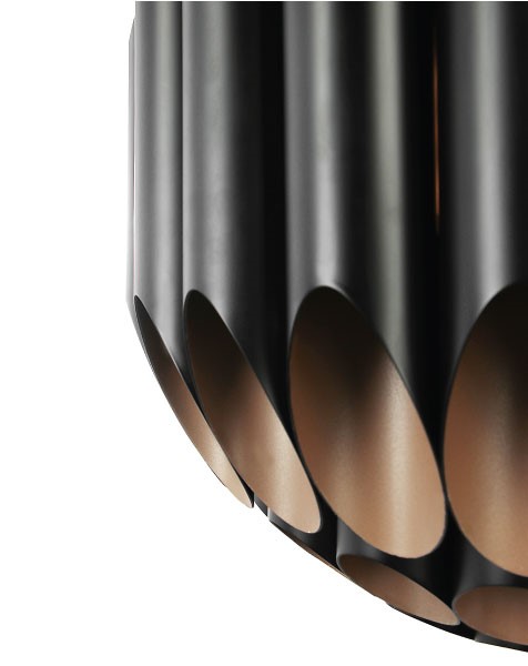 Inspired by the big afro hairstyles that popularized the 60s, Kravitz modern chandelier is also a tribute to the bold, multiple award-winning rock star, Lenny Kravitz. This unique chandelier has a series of tubes in a circular pattern trimmed to be shaped similar to a ball. With a structured handmade of aluminum, Kravitz features a matte black exterior and a gold powder paint interior finishing. Kravitz suspension light is a funky modern chandelier that will look perfect as a centerpiece to hang over a dining room area or as an entry light fixture.