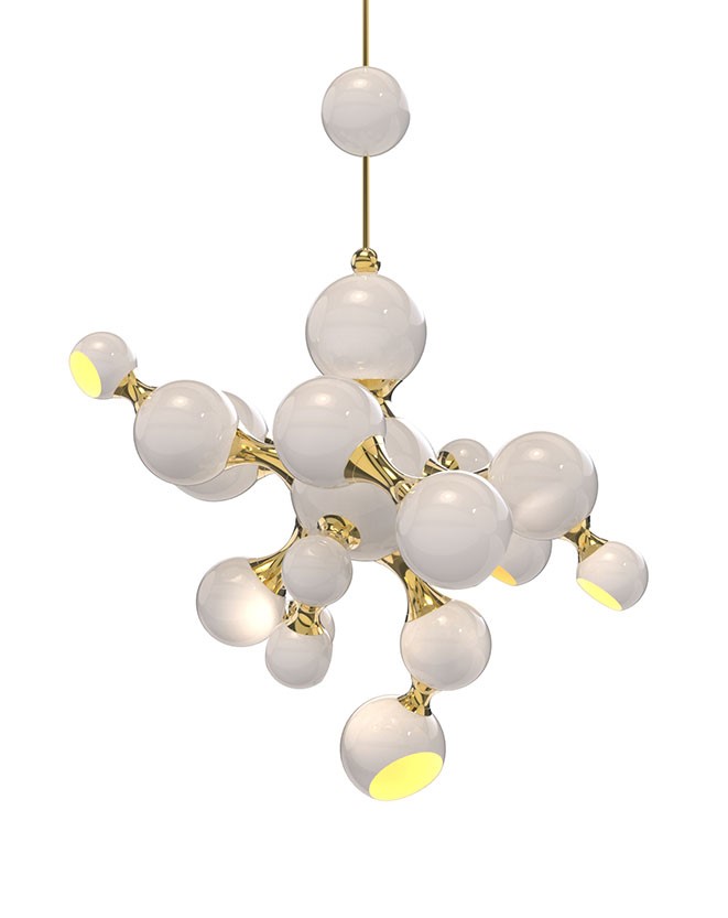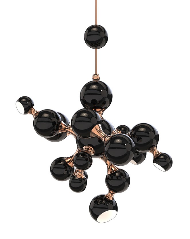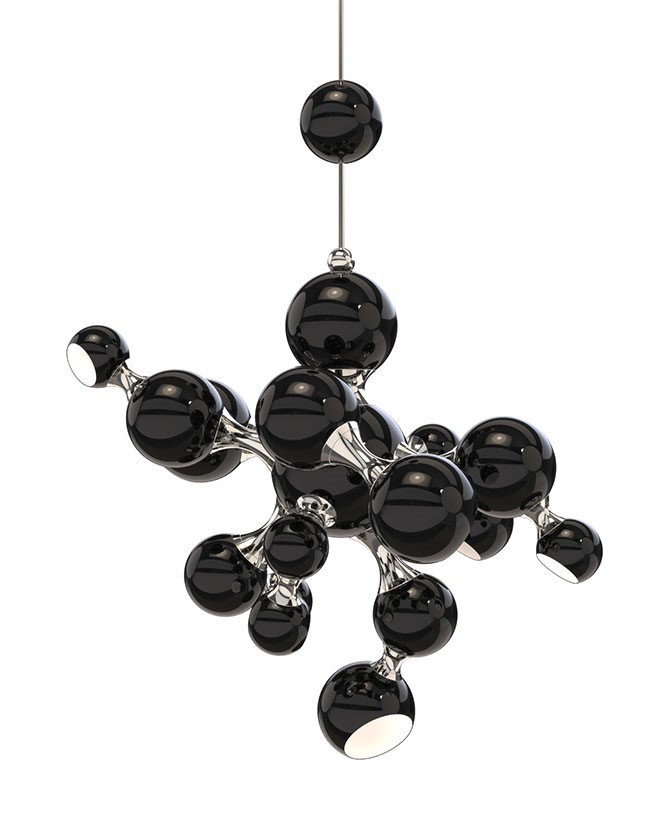 Atomic light pendant by DelightFULL is a modern design interpretation of the atomic age, inspired by the composition of the atom. Building this unique lighting design using materials such as brass, steel and aluminum, DelightFULL’s skilled artisans arranged it in an abstract composition, very similar to the non-conventional molecular forms. Both a glossy black and a gold-plated finish were used for the body, while glossy black and gold powder paint were the chosen finish of the shades. This stylish suspended ceiling light is the right fit for a contemporary living room, or even for a more modern master bedroom.