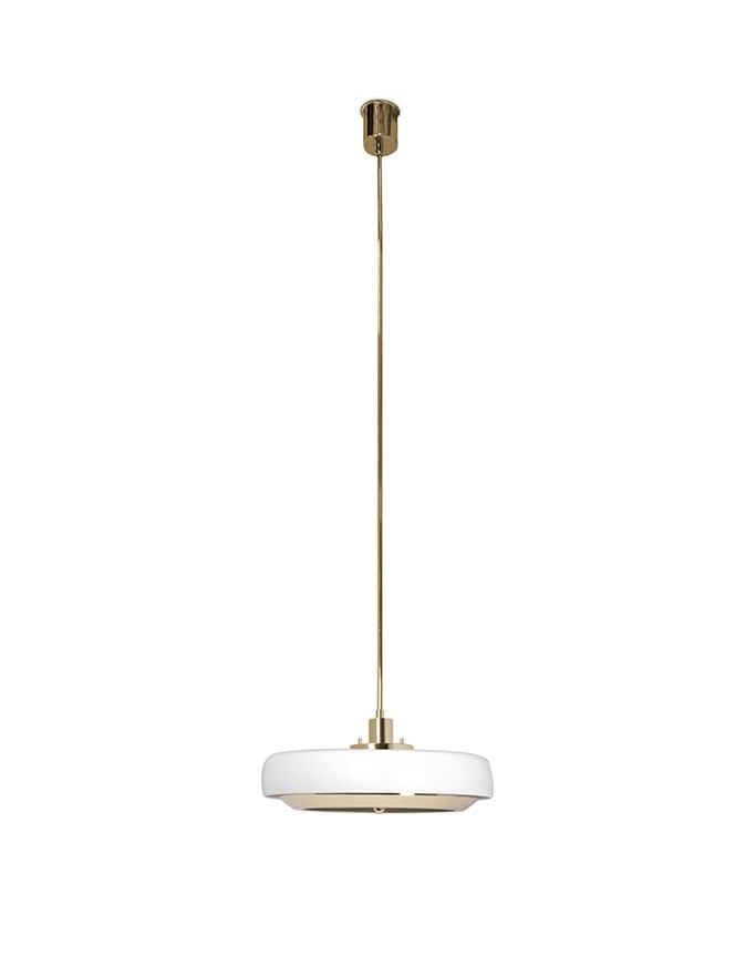 Carter pendant lamp is the singular piece that your modern home decor was missing. Designed with the great discoveries of space in mind, its unique shape is recognizable anywhere and its attention to detail is a one of a kind making this the perfect bespoke design. Handmade in polished brass and matte white, the soft casting light has all the perfect details to transform any project and create the perfect mood, casting light whenever you need.