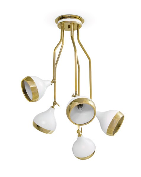 Hanna is a Vintage lighting fixture that will enhance your Home decor. Handmade in brass by talented artisans, this suspension lamp has five arms with bell-shaped shades, that can be adjusted to redirect the light. A unique functional and decorative lamp that can be used as a finishing touch in every space. Brighten up your Home decor with this classic and Vintage pendant Lighting piece that will suit any home design or room. A unique suspension lamp that will shine even when it is switched off.