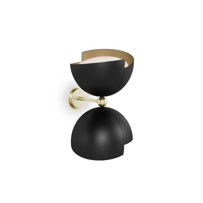 Draga & Aurel have always been fascinated by the retro-futuristic experimentation of Space Age design and fashion and wanted to transmit that idea through the bespoke Mirage wall lamp. Its silhouette and the composition of the material, with the contrast of black lacquered metals and shining brass, remind us of the extravagant outfits of the club revelers of that incredible time. Mirage’s minimalistic industrial look is what makes it so versatile and mysterious.