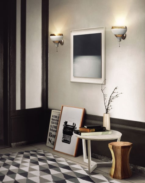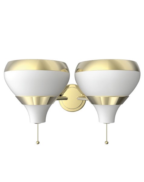 Hanna is a contemporary wall lamp that will bring a smooth ambiance your mid-century modern interior. With a structure made in brass, this wall sconce is gently covered by a gold plated bath, while its aluminum lamp shade is outlined by a gold plated and matte white finish. The on/off switch is located below the lamp shade with a stylish design for a quick and easy use. This white wall lamp can be customized and instead of having one lamp shade, you can choose to have two, in order to provide a more balanced look. With a minimalist style, Hanna wall light fixture is a luxurious addition to any space. Ideal as a bathroom mirror light or as an entrance wall lighting, Hanna is a stylish lighting creation that will adorn your wall with equilibrium and dynamism.