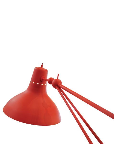 Meet Diana floor lamp, the tallest floor lamp of Heritage collection. Diana is an industrial floor lamp with a mid-century modern design, perfect for big industrial lofts and artistic studios. Built out of steel with a nickel plated finish, this floor light has a giant lamp shade that features a glossy red lacquer on the outside and a matte white interior finishing. However, the colorful aluminum lamp shade can be customized with any RAL color and will point light in every direction you need it, since it has a flexible lamp shade. This floor light is perfect for lighting while reading or working or even for ambient lighting. Going as high as 90.5 inches with a switch on the top, Diana XL floor lamp will turn any room into a giant colorful inviting space. Could it be more unique than this?