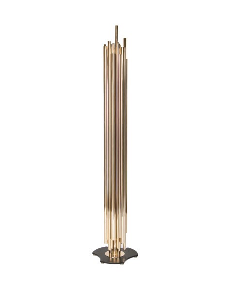 Dave Brubeck was the inspiration for one of DelightFULL’s more luxurious floor lamps. The art deco floor lamp represents in every single detail the way the jazz pianist musician blended very demanding rhythmic structures with improvisation in expressive and accessible ways. Therefore, in this lighting design you can find asymmetrical gold plated tubes in order to attribute a contemporary lighting effect. However, you can customize this modern floor light, since there is available a wide range of finishes: gold, nickel or copper plated, brushed brass or nickel, aged brass or any RAL lacquered color of your choosing. The base of this mid-century modern lamp is handmade in steel with a matte black finish. All in all, Brubeck brass floor lamp is a functional and sculptural lighting able to enlighten any setting with its height of 65.7 inches.