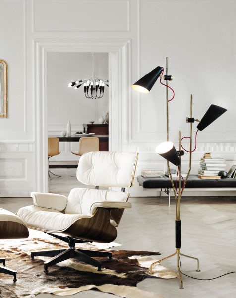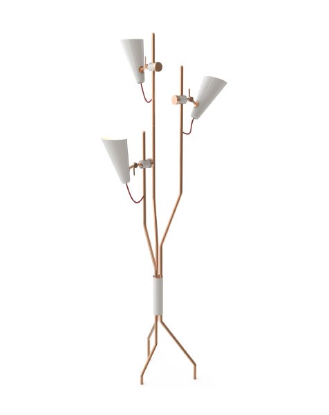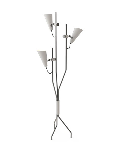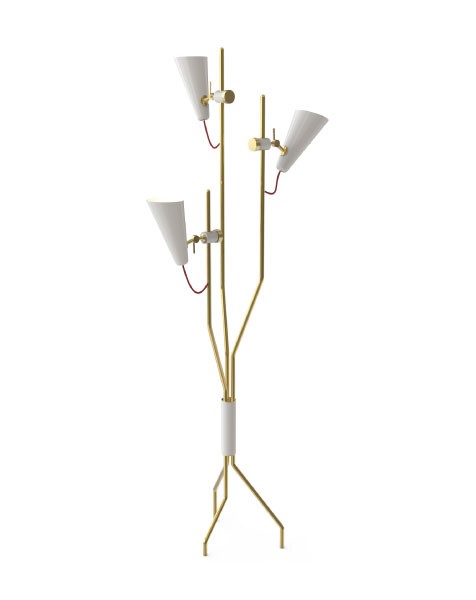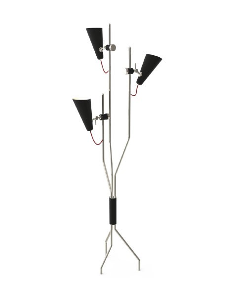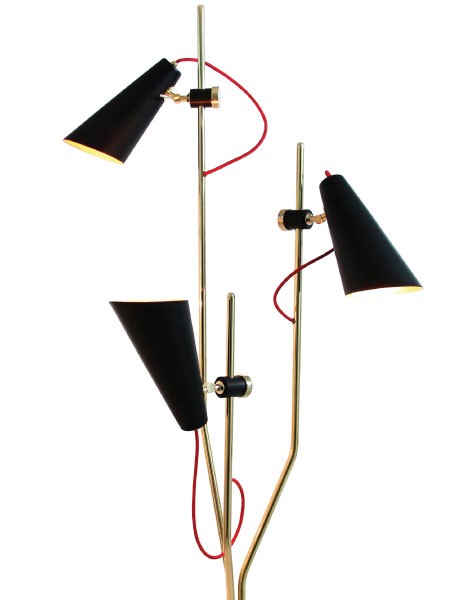 With a mid-century modern vibe, this Evans floor lamp has three diffusers. Each shade is moveable and adjusts making this a very functional light source that can be changed depending on where it is placed. This tripod floor lamp features an avant-garde design that will provide a light-filled optimism to your mid-century modern interior design. The matte black & gold powder paint finishes are a great accent for any space. With a height of 74 inches, the on/off switch is conveniently located for a quick and easy use.