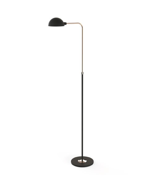 Inspired by the amazing personality of Herbie Hancock, Herbie floor lamp provides a brilliant warm vibe to every mid-century modern room. With a structure handmade in brass, its matte black exterior is complimented by a matte white interior shade. The standing lamp offers the possibility to regulate its direction and height from 47, 24“ to 63 inches. Ideal for a variety of styles and with a minimalist style, this modern light will make a statement next to any mid-century accent chair, chaise or sofa to give your interior design a contemporary style.