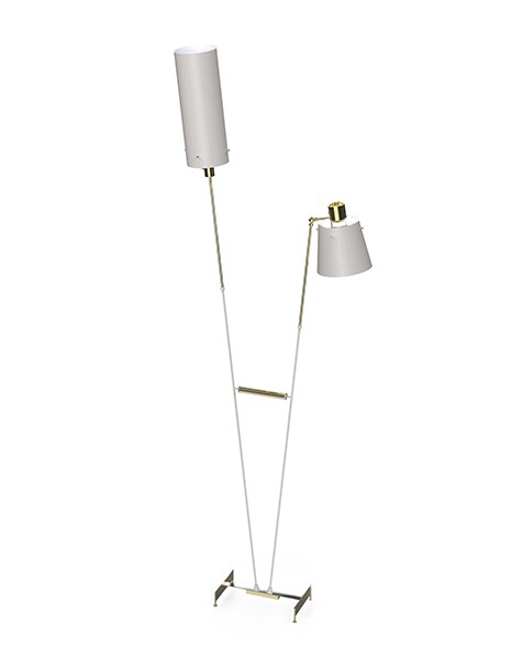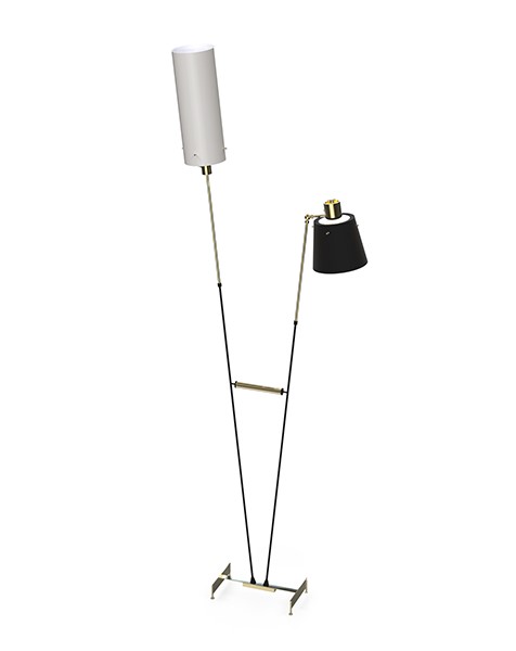 Just as the influential Jaco Pastorius jazz composer but also as gifted electric guitar player, Pastorius standing lamp revives the 70’s design aesthetics with a dual character. The result is a sophisticated and highly functional brass floor lamp with two distinct diffusers that can be lit alternatively. Therefore, the vintage floor lamp allows you to point the light where you need it the most. Pastorius is the ideal corner light for your mid-century living room and reading corner since this versatile floor lamp can provide any space the perfect reading lighting. The black and white floor lamp has a structure made of brass and lamp shades in acrylic and aluminum with a matte black and glossy white exterior.