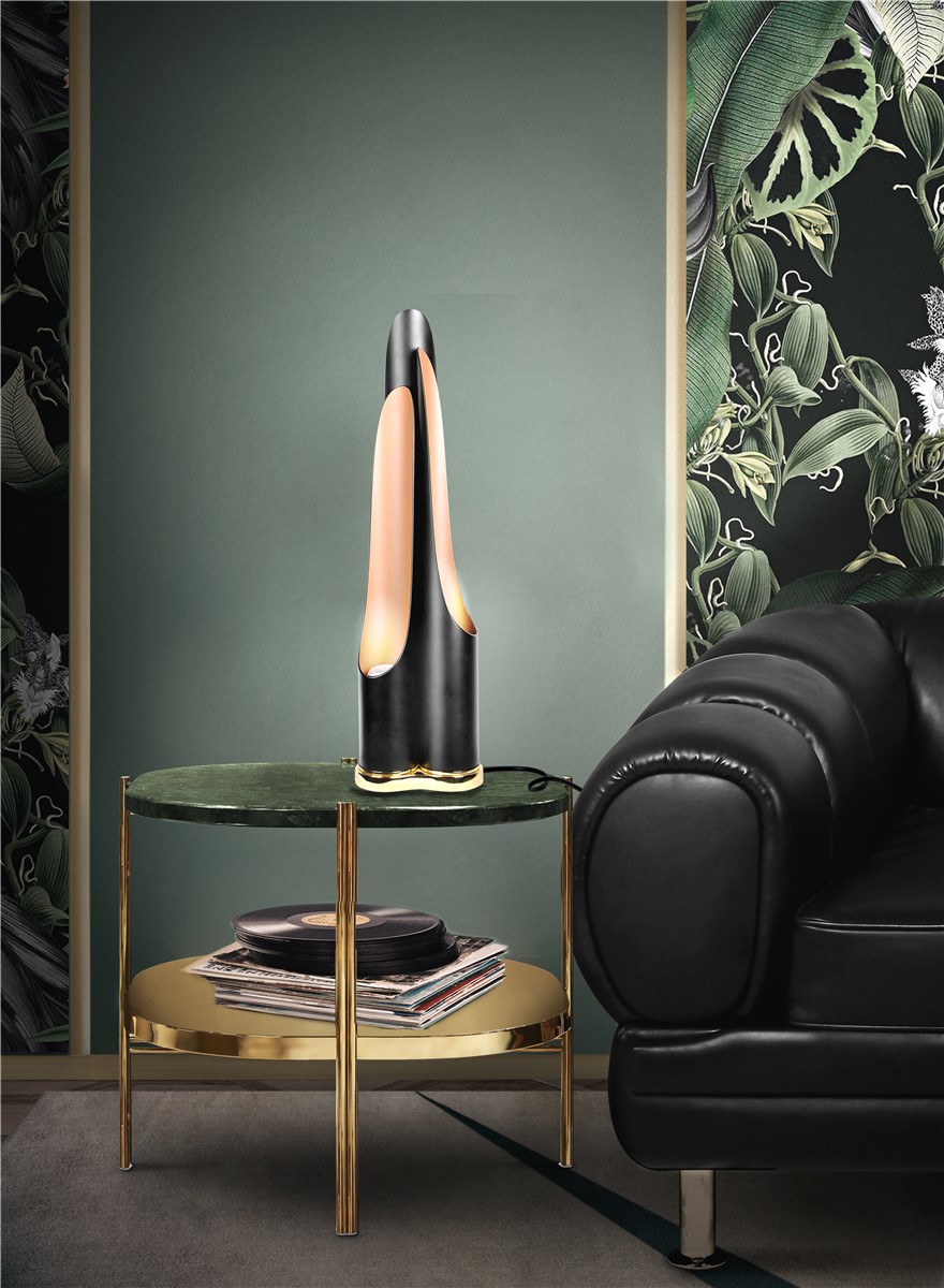 The mid-century Coltrane table light is a modern lighting fixture, which embodies the contemporary principles of minimalism. With this in mind, DelightFULL’s designers came up with a minimal black table lamp with three tubes that cast the most soothing glaze. This modern desk lamp is handmade in brass and steel, with a gold-plated base that is topped up with a matte black finish on the three shades. It serves as a great bedside table lamp, as well as a unique entryway table light.