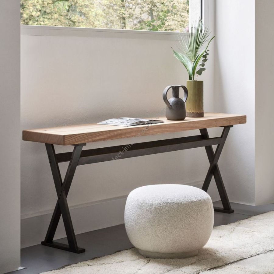 A modern feel and a sartorial technique, the traditional Italian craftsmanship blends with modern and contemporary design bringing the Benjamin console to life. A styling game between the crossed metal base, with a fresh and natural taste, and the rectangular solid wood top, with slightly rounded corners. Benjamin describes the preciousness of a lively, organic material which is pleasing to the eye and to the touch. The console also finds a successful self-expression with the shape of a table: the Benjamin dining table.