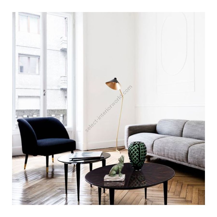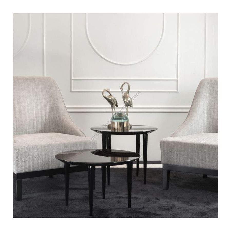 A light small table with ebony or glossy black lacquered top, available in gueridon and coffee versions. Perfect for elegant and sophisticated spaces.