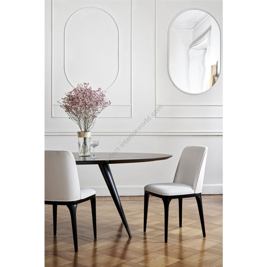 Fabric cover in a wide fabric range. In the DOM RIVIERA version the legs are in natural riviera beech or matt lacquered white/ ivory/ black.