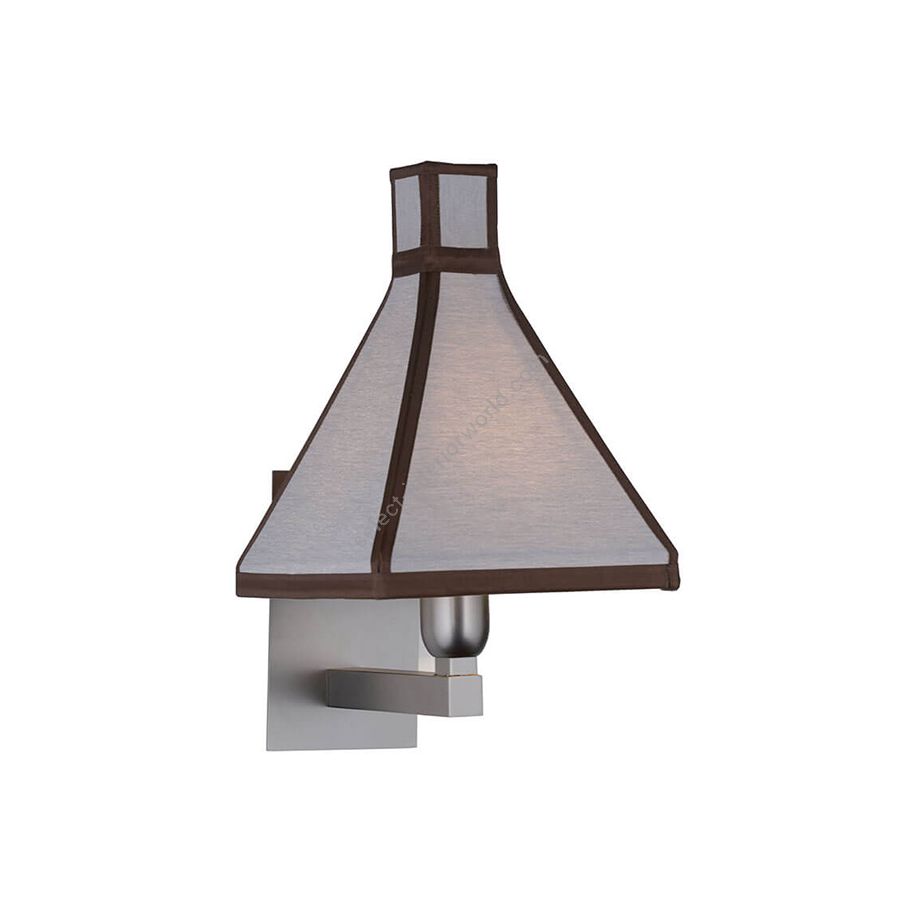 Wall lamp with a fixed arm in brass matt black nickel finishing. Fabric lampshade.