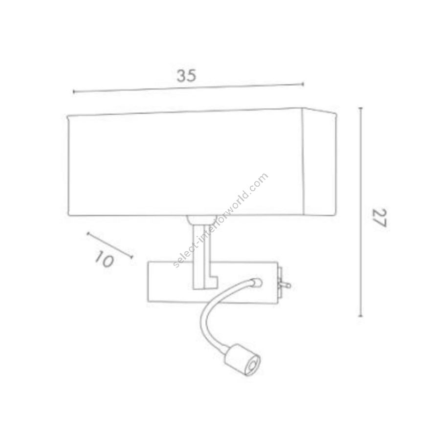 Wall lamp in brass metal with fabric lamp shade. LED downlight in satin nickel finishing with adjustable arm.