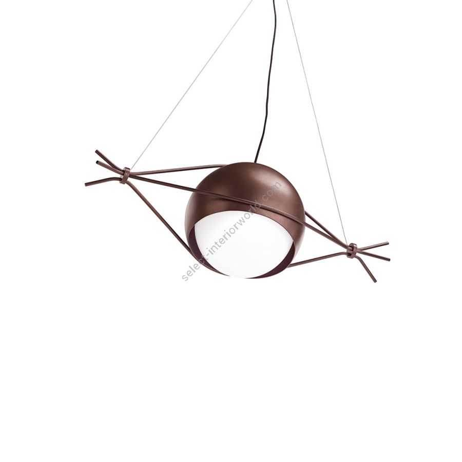 Nobody is an abstract entity, substance without body: a metal sphere free to move through space. Only a slender and ethereal structure supports it from the ceiling, making it float in mid-air. Nobody is also a Homeric reference, a tribute to the cunning of Ulysses who succeeded in escaping from the cave of the one-eyed giant Polyphemus by telling him his name was Nobody: the diffuser of the light fitting can be intended as a single eye to be positioned as desired.