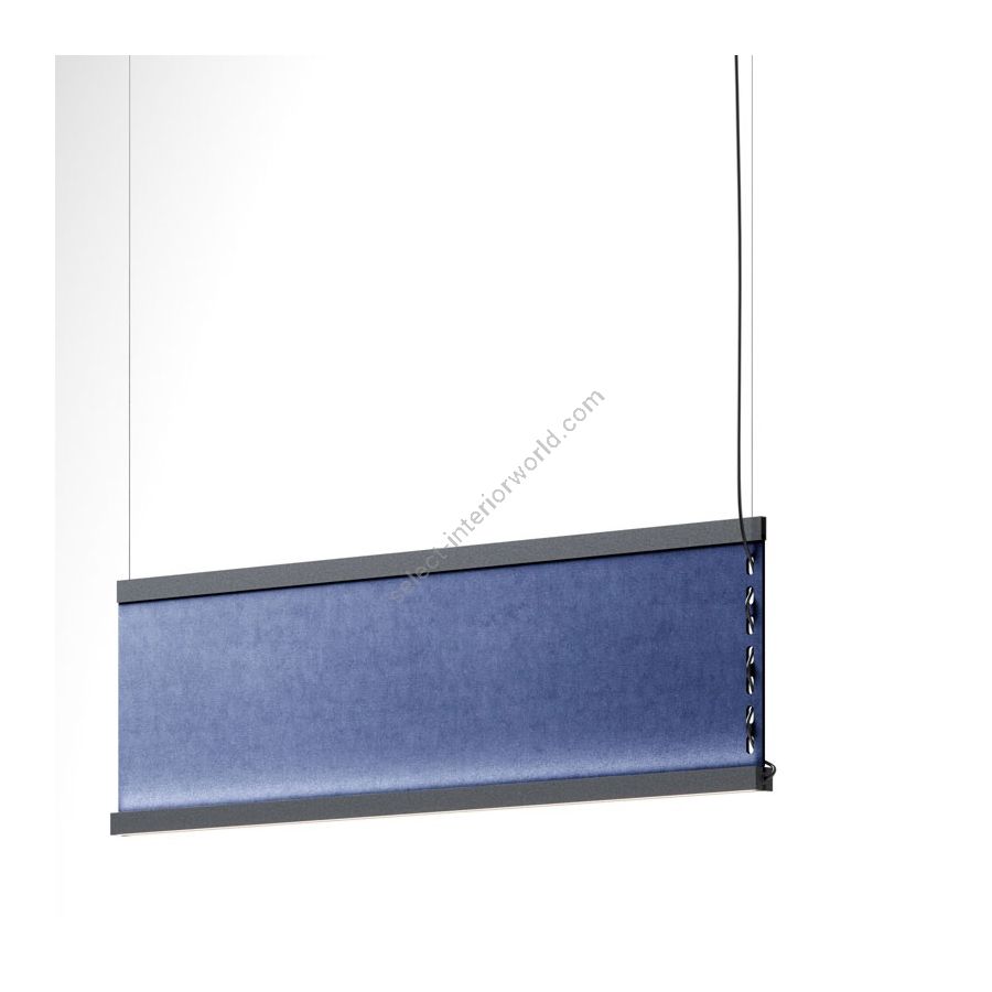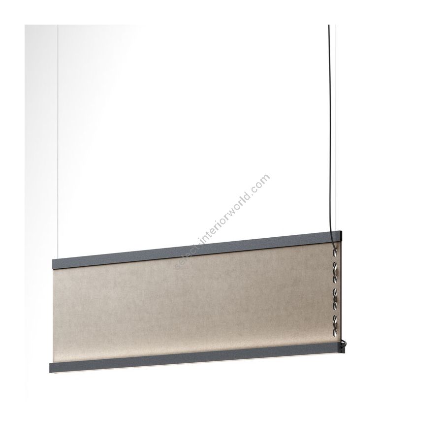 The black anodised aluminium structure has an upper diffuser in opaline PMMA (Polymethylmethacrylate) and a lower diffuser in micro-prismated PMMA. The panels are lined with sound-absorbing fabrics in various colours and are available with customised finishes.