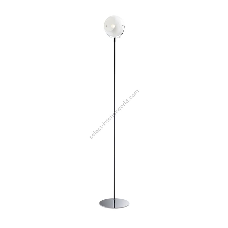 Floor lamp with polished chrome-plated structure. Adjustable polished white blown glass diffuser.