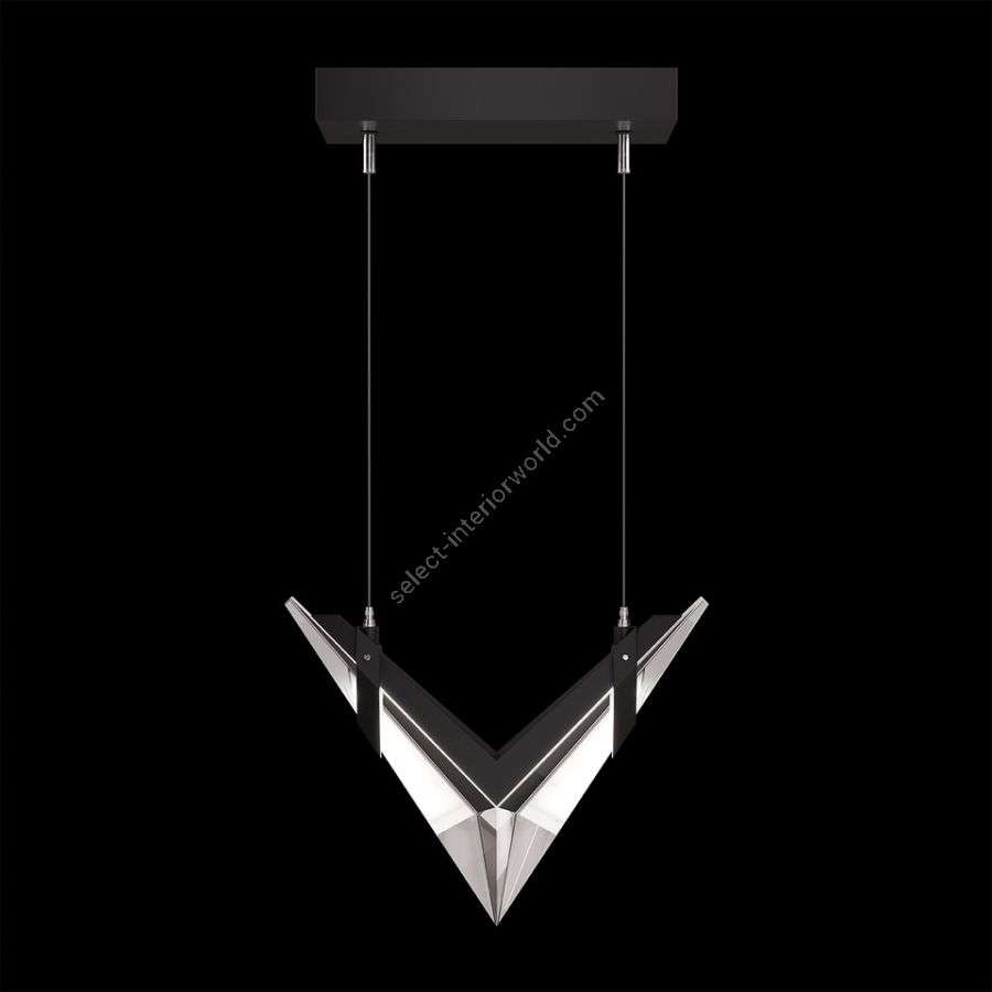 Inspired by the bold geometry of chevron shapes and the sleek lines of modern aircraft, Blade brings a sense of motion and precision to lighting design and merges sleek design with modern functionality. Pendant features cut crystal and integrated LEDs in Standard Black Iron or Champagne finish. Dark Walnut stained wood featured on select items adding warmth to the metal forms.