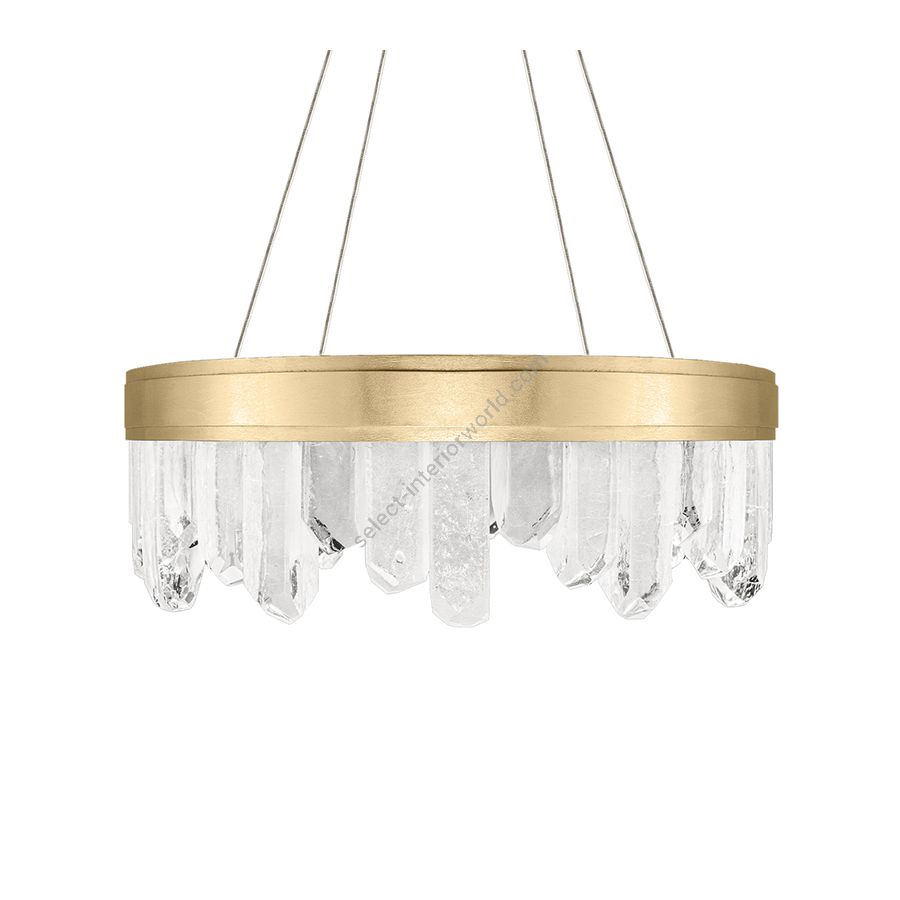 Reversible LED pendant influenced by the ephemeral appearance of illuminated rock crystal, which has been interpreted into handmade glassworks with the collaboration of the Fine Art Lamps studio glass master craftsmen. Formed of glass spires that mimic natural crystal formations as much as they do rays of sunlight, and clean metal lines in unadorned but precious finishes. Available in silver leaf, gold leaf and patinated bronze in either 3000K temperatures.