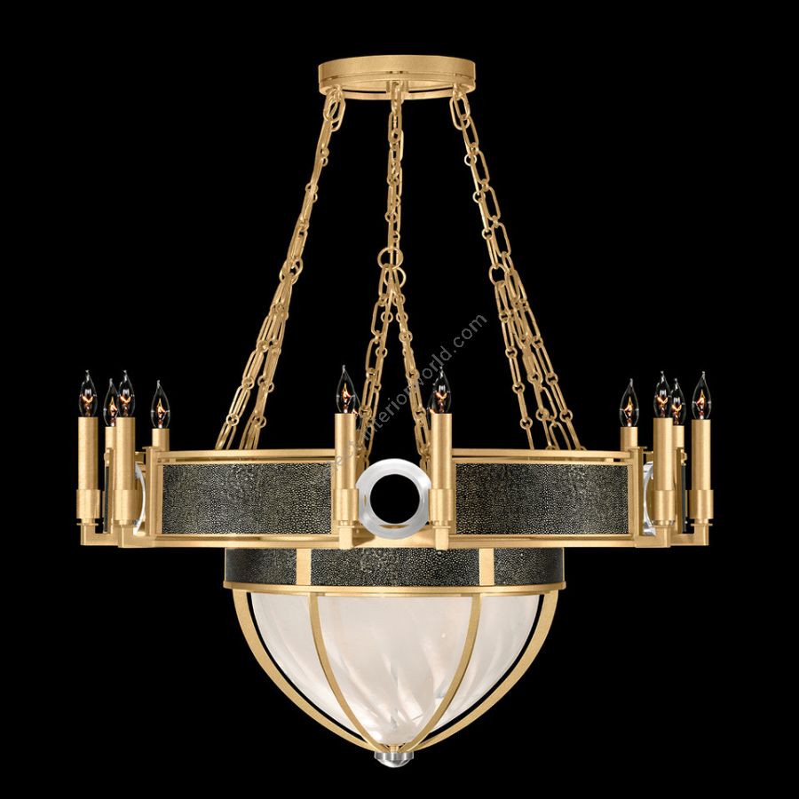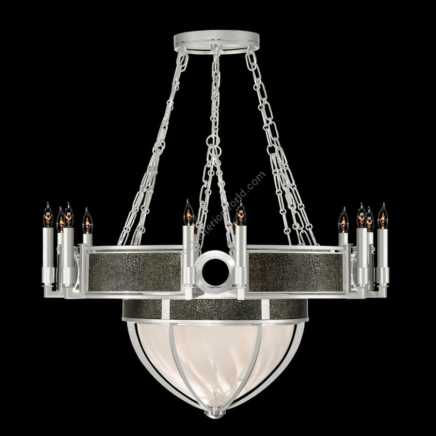 With its inviting swirls in the handblown glass echoing the gentle whirl of a desert zephyr, this Mirage chandelier transforms light into a visual poetry that dances across the room. The charm of the upcycled shagreen and the elegance of mixed metals are not just a figment of imagination but tangible, customizable luxuries that elevate the everyday. Mirage is a testament to the beauty of dreams made real, an enduring emblem of refined taste and sophistication.