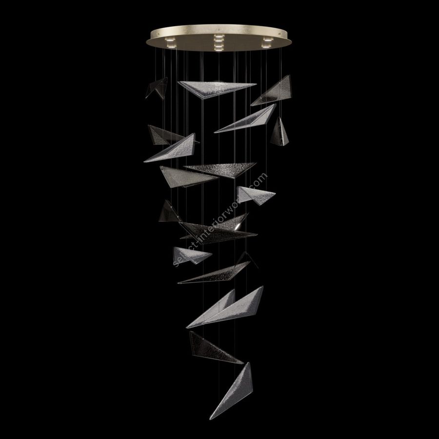 Our Volo Collection captures the quiet momentum of flight through cascading geometric forms and customizable, suspended compositions. Handcrafted studio glass—available in clear, smoke, or amber with hammered or linear textures—evokes the interplay of wind, light, and elevation with striking elegance.