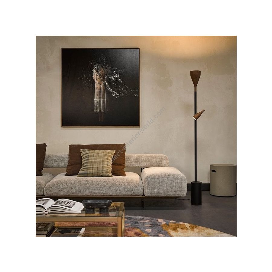 Both fixtures are independently dimmable and equipped with a powerful, warm white integrated LED with heatsink. The uplighter is spherical dim to warm. Timber floor is durable long lasting and has e high efficiency. The frame is available in black and white and can be combined with 4 different finishes: walnut, oak, ash stained white and ash stained black.
