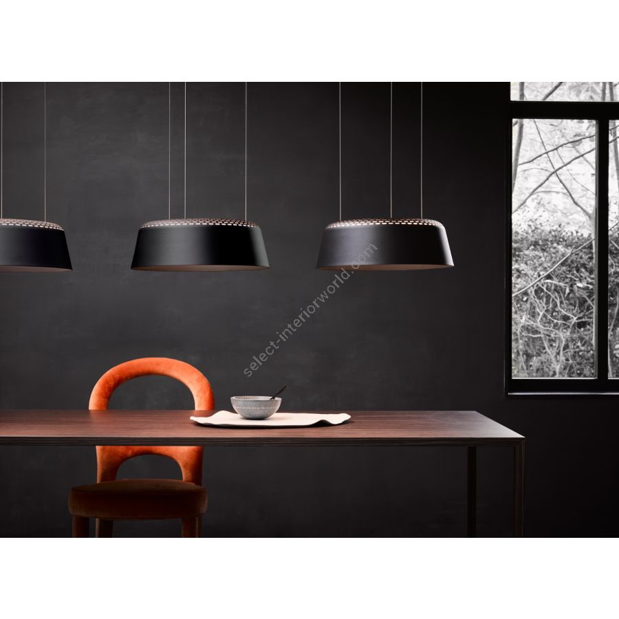 The perforations in the steel offer a subtle decorative effect and also allow the light to be transmitted. The pattern on the shade is characteristic of the design. Ring is an understated pendant light with unique details which makes it widely applicable in a variety of interiors.