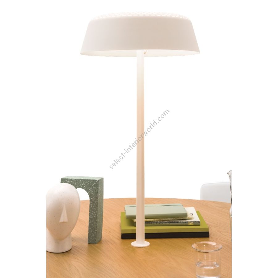 An extension to the Ring pendant is the Ring T1. A table version with a Pin mount or a rectangular base. A timeless design with a minimum of reflecti-on and superb light comfort! Because the LED is cleverly integrated , there is no glare which is ideal for above a desk or communal table. Thanks to the luminaire’s openness it has a fine spread of light. In addition, the even light ensures that there is no hard, unwanted shadowing. The perforations in the steel provide a subtle decoration and at the same time allow the light to pass through. The pattern on the shade is characteristic of the design. Ring is a subdued pendant lamp with unique details and therefore widely applica-ble in various interiors. Available in white and black powder coating and on request in any RAL colour.