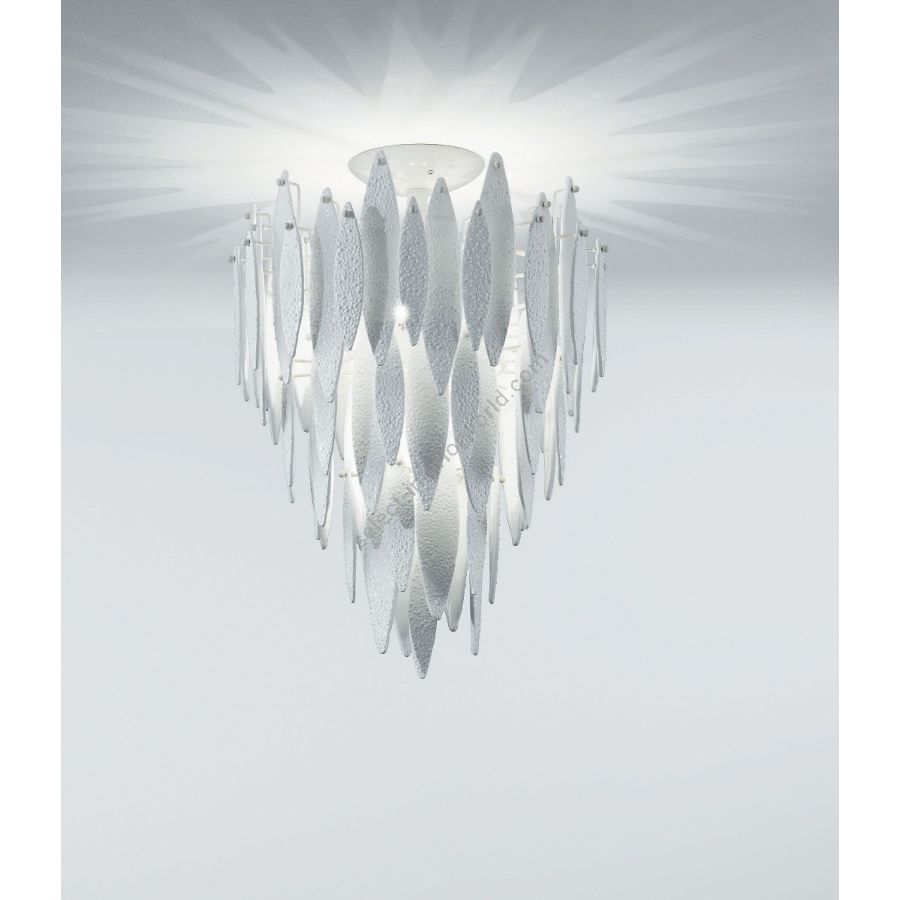 – CRYSTAL: metal frame in soft ivory with leaves of transparents Murano glass.